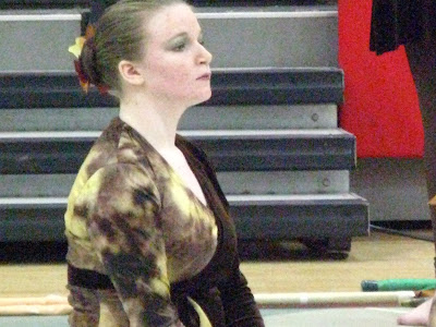 This past Saturday we got to see Rachel and Carli perform as part of 11th Annual Winterguard Show. Having gone to school in NYC I had no idea what to expect-we had nothing like this at my school. It was pretty amazing:each school's presentation had a distinctly different feel to it. Some were very Martha Graham, others could have been part of an opening/closing ceremony of the Olympics while others seemed to be influenced by the art of ice dancing. The piece that Rachel & Carli did was very balletic & graceful , done to moving music and spoken word & they had this wonderful transition where their costumes (& flags ) went from brown to green to signify change: the way leaves change from green to brown.